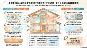 明工建設が届けたいのは、不安を取り除くために、健康・家計・災害やもしもの時まで考え抜いた家づくり。