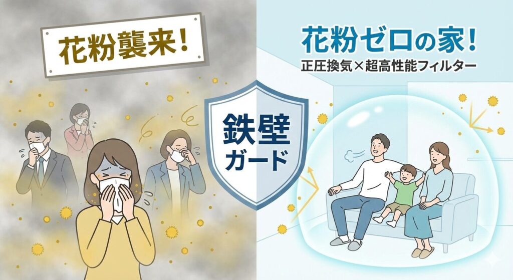 その理由は、空気の入口から出口まで徹底的にガードする**「超高性能フィルター」**と、花粉を物理的に押し返す**「正圧換気」**にありました。
