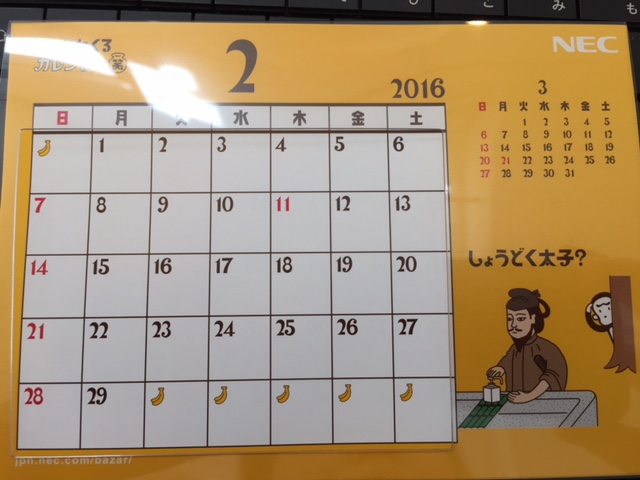NECさんから頂いた只今愛用中の2016年卓上カレンダーです。