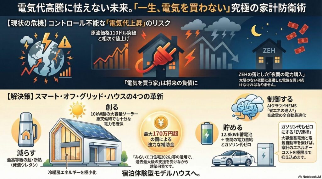 電気代高騰に怯えない、究極の家計防衛としてのスマートオフグリッドハウス徹底解説