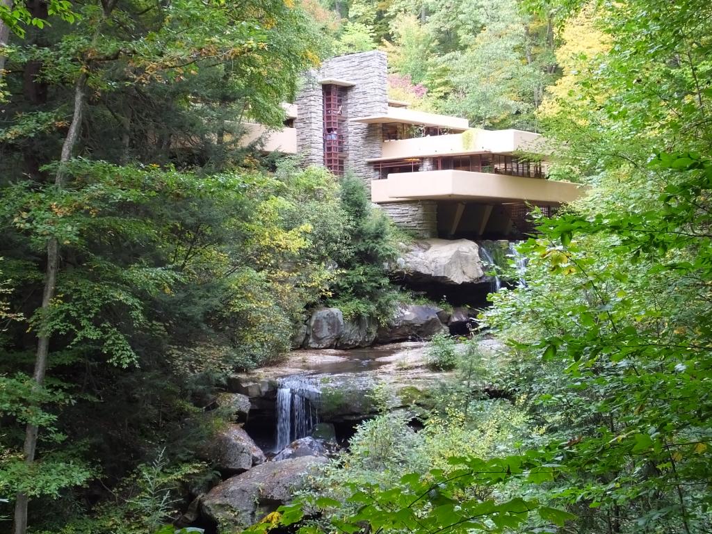 - 自然と建築の融合:滝の上に建てられたこの家は、建物そのものが自然の一部であるかのようなデザインが特徴。