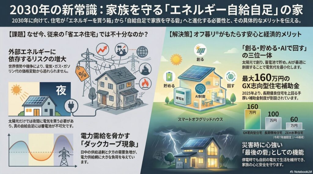 スマートオフグリッドハウスという考え方が、すっと入ってくる方も多いと思います。