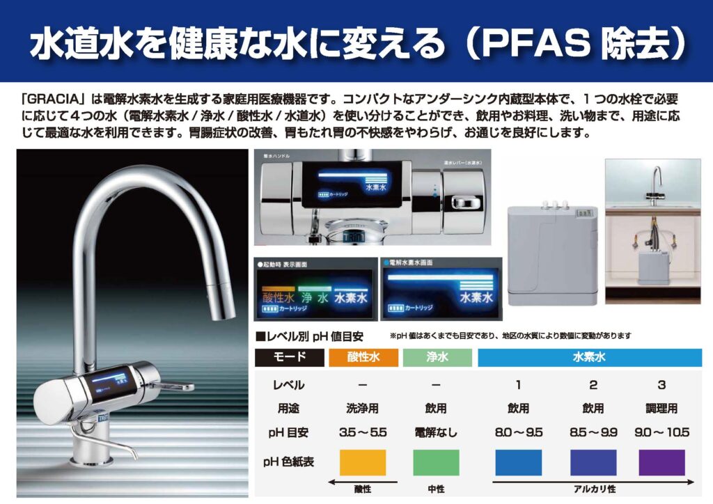 私たちは、PFASやトリハロメタンを除去できる高度な浄水システムを推奨しています。