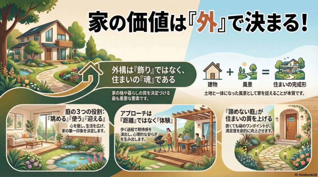 多くの人が「外構=装飾」と捉えがちですが、私はこれを決して“飾り”とは考えていません。