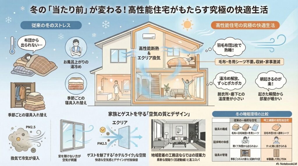 冬の朝、布団から出られない苦痛は、家の性能で変えられる