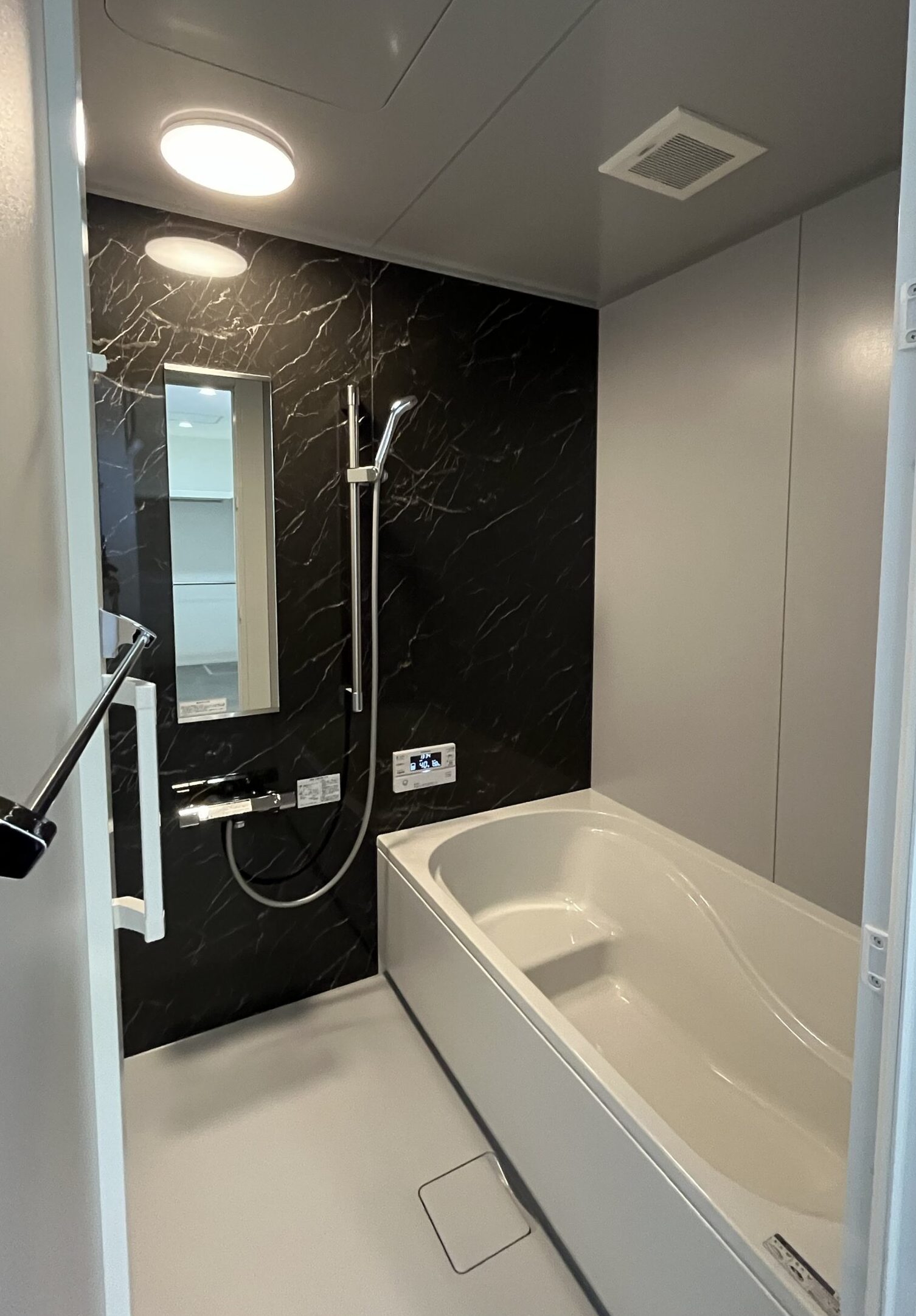 高級感あふれるバスルーム。落ち着いた色調と機能性が融合し、1日の疲れを癒す空間に。