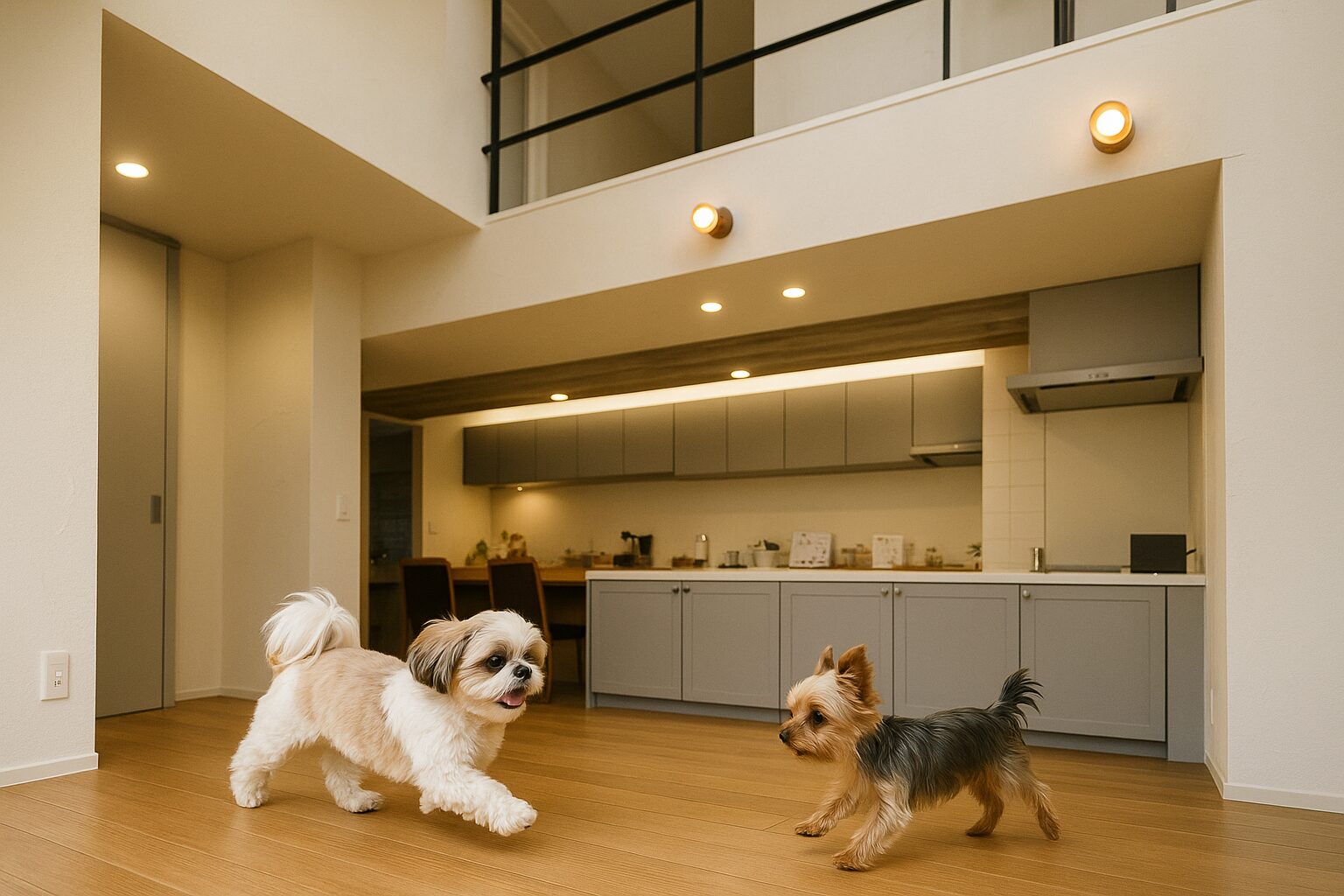 「ペットが落ち着く家は、人にもやさしい家」なんだ。 滑らない床、空気の流れ、においのコントロール… すべてが繋がって、家族みんなの健康を守るんだよ。