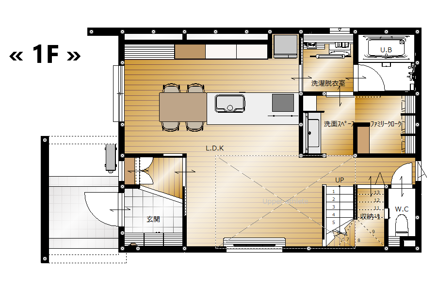 - 建物面積:1F55.07㎡、2F45.54㎡ 合計100.61㎡(30.4坪) 土地面積/176.40㎡(53.36坪)